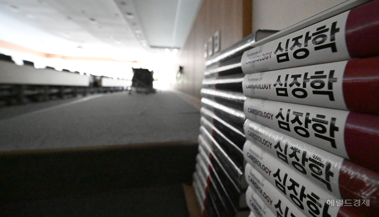 지난 4일 오후 서울 시내의 한 의과대학 내 텅 빈 강의실에 의료서적이 놓여있다. 임세준 기자 |