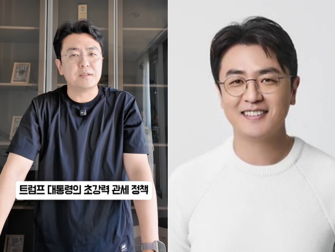 공개된 영상 속 최동석은 도널드 트럼프 미국 대통령의 관세 정책에 대해 설명하고 있으며, 마치 뉴스를 진행하는 것처럼 진지한 표정이 눈길을 끈다.