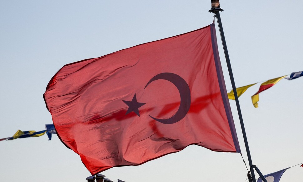 지난달 28일(현지시각) 튀르키예 이스탄불의 해군 사령부에서 튀르키예 국기가 바람에 휘날리고 있다. 로이터 연합뉴스 |