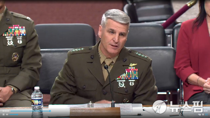 그는 이어 "북한의 핵·미사일·사이버 능력이 미국 및 동맹국, 그리고 국제 안보에 위협이 되고 있다"며 "북한이 주한미군뿐 아니라 일본, 괌, 미국 본토까지 타격 가능한 미사일을 시험했고, 최근에는 러시아와의 전략적 협력으로 군사력이 더욱 강화될 것으로 전망된다"고 우려했다.