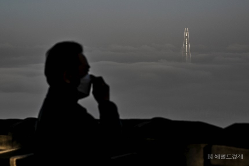 경기도 광주시 남한산성에서 바라본 롯데월드타워 일대가 미세먼지와 황사로 인해 뿌연 모습을 보이고 있다.[임세준 기자] |