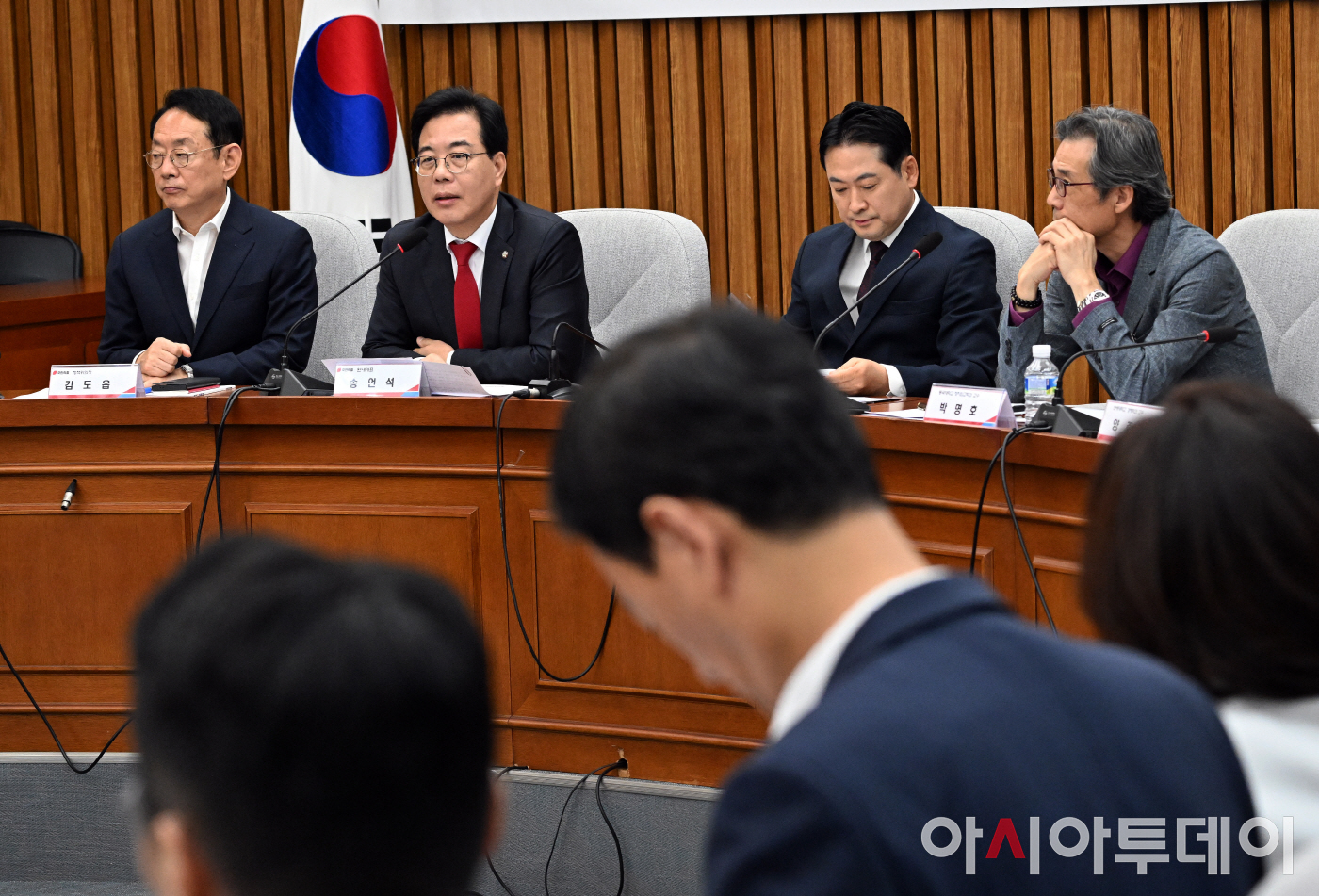 아시아투데이 송의주 기자 = 송언석 국민의힘 원내대표가 12일 국회에서 열린 '이재명 정부 100일 국정 파탄 실정 토론회'에서 발언을 하고 있다.