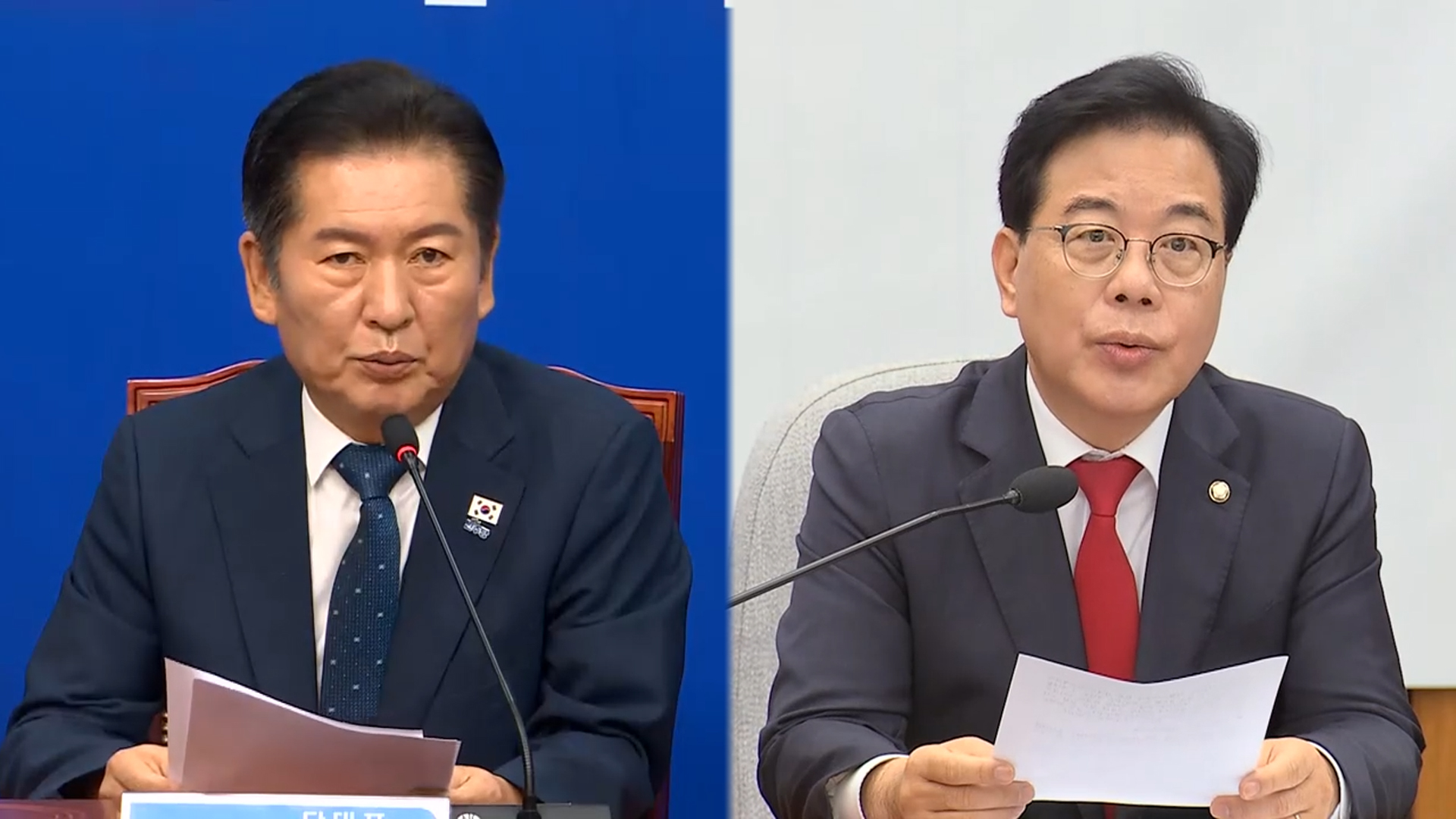 더 센 특검법 처리 과정에서 공개적으로 갈등이 불거진 더불어민주당 정청래 대표와 김병기 원내대표가 오늘 지도부 회의에서 만났습니다.
