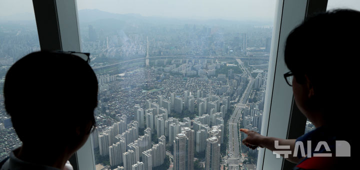 [서울=뉴시스] 지난 5월26일 서울 송파구 롯데월드타워 전망대 서울스카이에서 시민들이 서울 강남, 송파, 서초권 아파트를 바라보는 모습. 2025.09.12. (사진=뉴시스DB) photo@newsis.com |