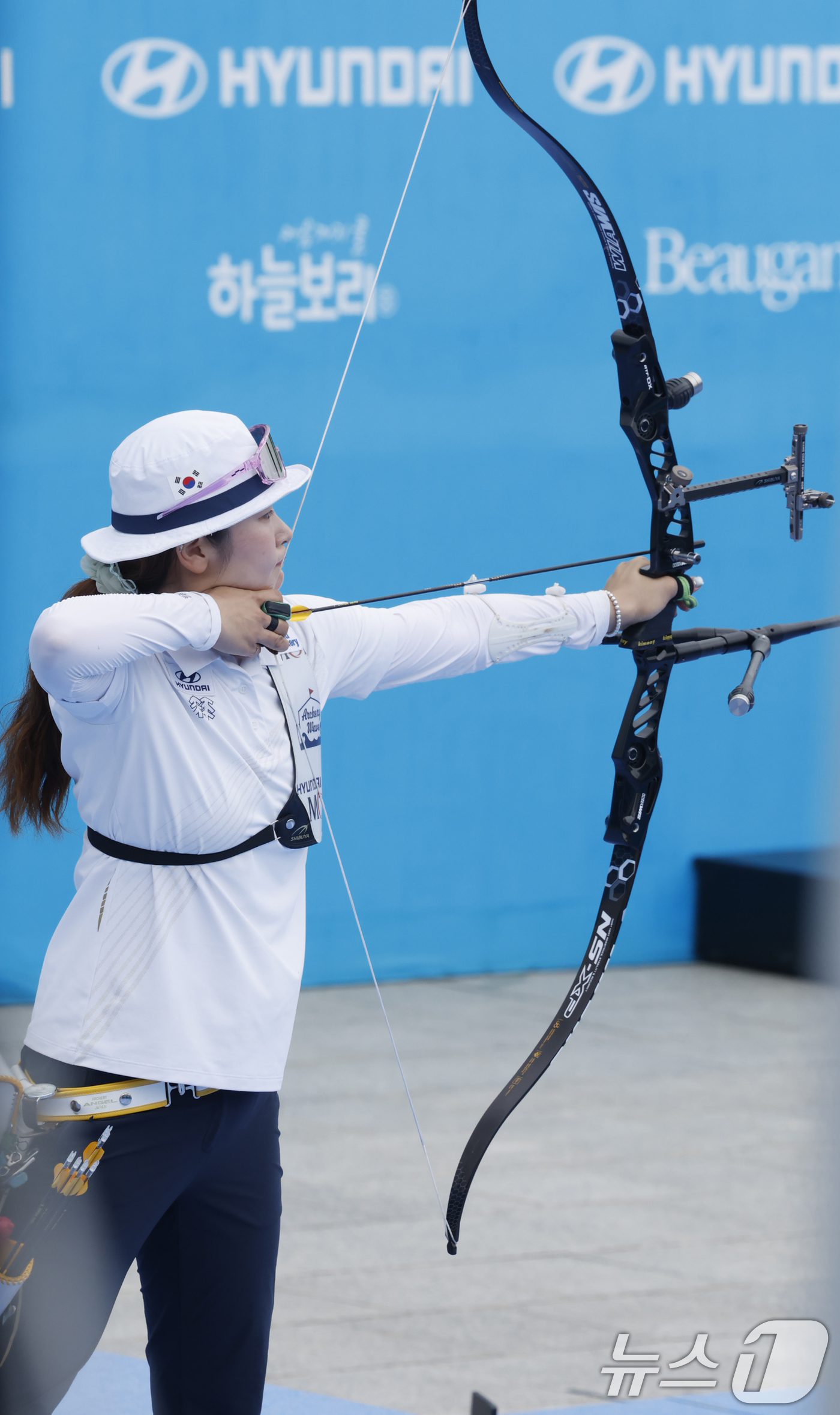(광주=뉴스1) 김태성 기자 = 강채영이 12일 광주 동구 5·18민주광장 특설경기장에서 열린 2025 세계양궁선수권대회 리커브 여자 개인전 결승에서 중국 주징이를 상대로 활시위를 당기고 있다. 2025.9.12/뉴스1