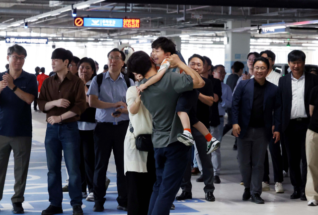 ▲ 미국 이민당국에 의해 조지아주에 구금됐던 한국인 근로자들이 12일 인천국제공항 제2여객터미널 주차장에서 가족들과 상봉하고 있다. ⓒ연합뉴스 |