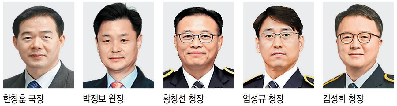 12일 경찰청은 치안정감 5명, 치안감 9명에 대한 승진 내정 인사를 발표했다. 치안정감에는 한창훈 경찰청 생활안전교통국장(57·간부후보생 45기), 박정보 경찰인재개발원장(57·간부후보생 42기), 황창선 대전경찰청장(59·경찰대 6기), 엄성규 강원경찰청장(54·간부후보생 45기), 김성희 경남경찰청장(55·경찰대 9기)이 발탁됐다.