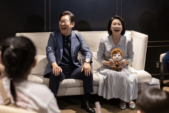 [서울=뉴시스] 최동준 기자 = 이재명 대통령과 김혜경 여사가 6일 서울 용산의 한 영화관에서 영락보린원 원생들과 함께 한국 애니메이션 '킹 오브 킹스' 관람을 하고 있다. (사진=대통령실 제공) 2025.09.06. photo@newsis.com *재판매 및 DB 금지 |