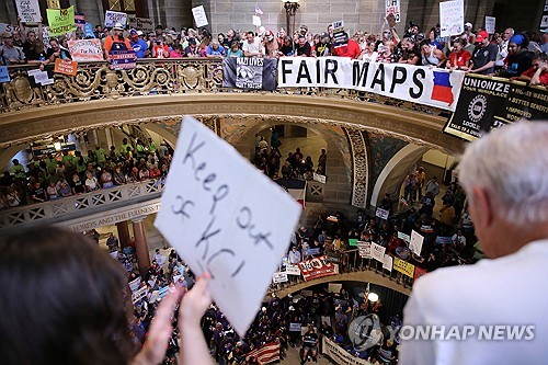 지난 10일 미국 미주리 주의회에서 공화당에 유리한 선거구 조정안에 반대하는 시위자들 |