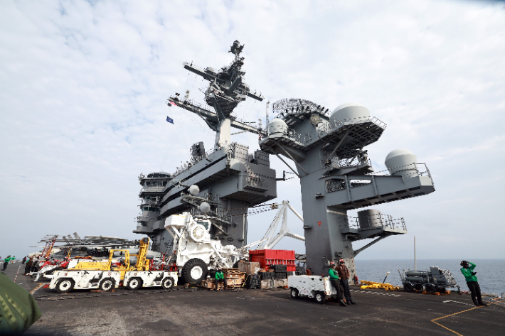지난해 11월 14일 제주 남방 공해상 미국 항공모함 조지워싱턴함에서 한미일 다영역 훈련 24-2차 프리덤 에지가 열리고 있다. 국방홍보원 제공 |