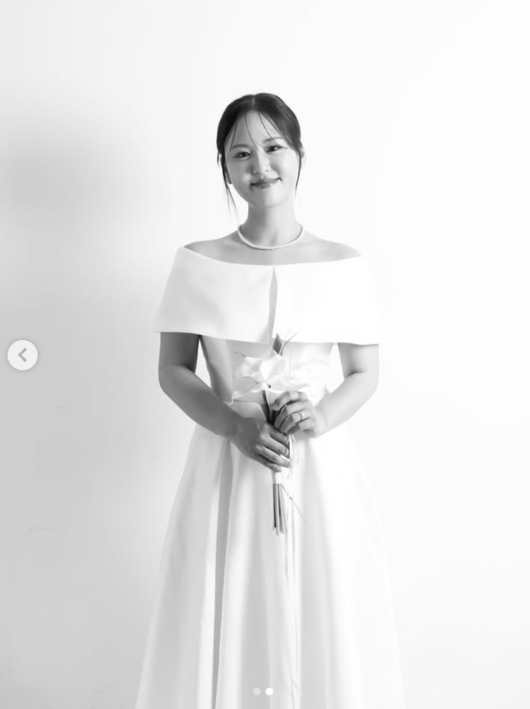 공개된 사진에는 자필 편지와 함께 웨딩 사진이 공개됐다. 순백의 웨딩드레스를 입고 부케를 손에 든 경서는 수줍은 미소을 짓고 있다.