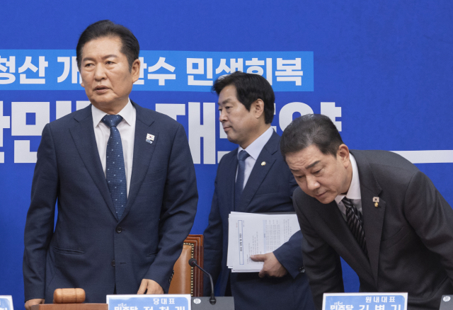▲더불어민주당 정청래 대표와 김병기 원내대표가 12일 국회에서 열린 최고위원회의에 입장하고 있다. ⓒ연합뉴스 |