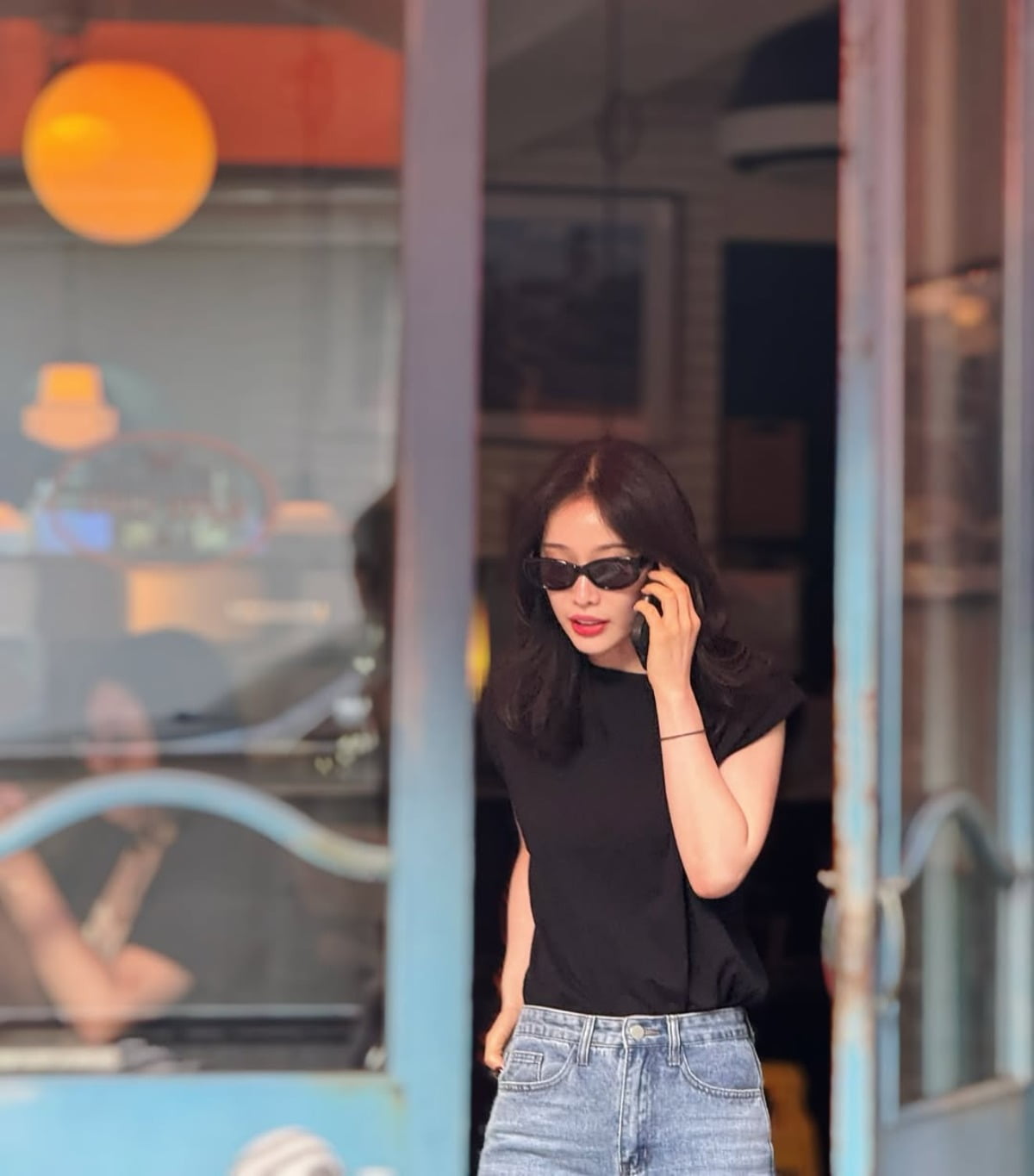 김히어라가 블랙 선글라스와 민소매 톱, 데님 조합으로 시크미 폭발한 비주얼을 선보였다.