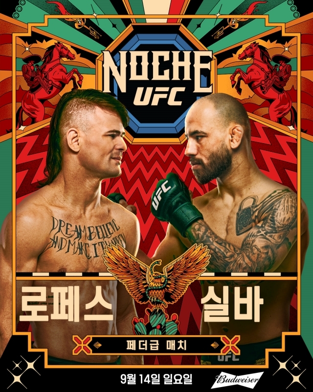 ‘노체 UFC: 로페스 vs 실바’ 메인카드는 오는 9월 14일 오전 7시부터 tvN SPORTS와 티빙(TVING)을 통해 생중계된다.