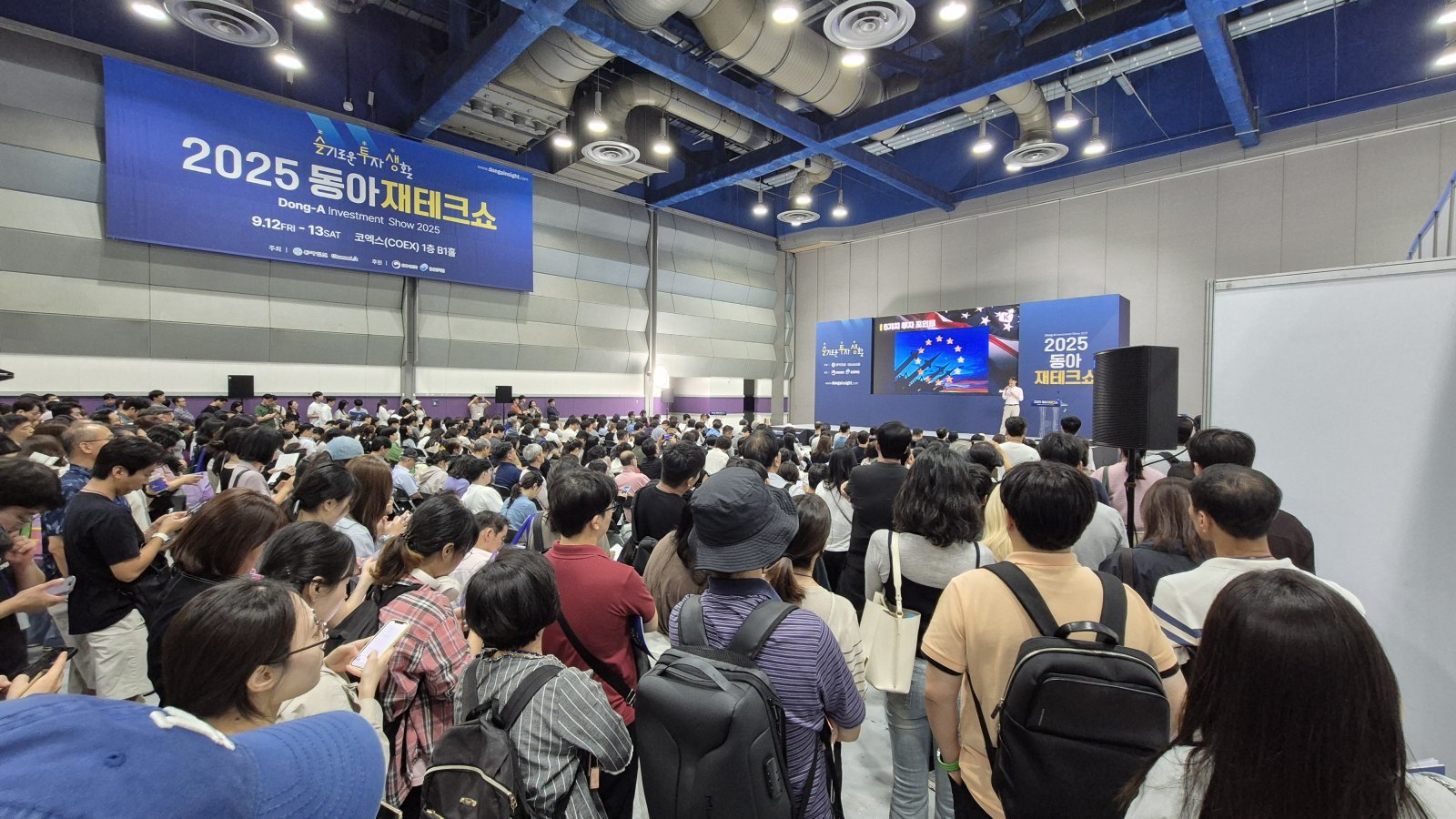 ‘2025 동아 재테크쇼’ 이틀째인 13일 서울 강남구 코엑스에서 관람객들이 강연장을 꽉 채우고 있다. 강연을 맡은 안석훈 키움증권 WM부문 투자콘텐츠팀장은 “다가올 금리 인하기에 금, 채권, 리츠, 배당주, 유럽 방산주 등 5가지에 가상자산 산업 관련 상장지수펀드(ETF)를 들여다볼 필요가 있다”고 조언했다. 주현우 기자 woojoo@donga.com |
