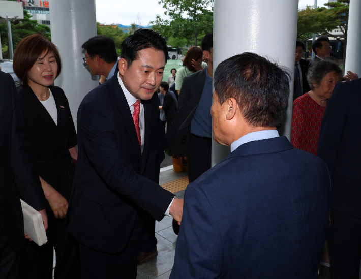 전날 장 대표는 부산 방문 첫 일정으로 손 목사가 담임으로 시무하는 부산세계로교회 주일예배에 참석했다. 그리고는 연단에 올라 손 목사 구속을 '종교 탄압'으로 규정하며 "손 목사의 선한 뜻을 하나님이 대한민국을 다시 깨우는 데 사용하실 것"이라고 말했다. 손 목사는 지난 4월 부산교육감 재선거와 21대 대선 당시 특정 후보를 지지하고 사전 선거운동을 한 혐의로 최근 경찰에 구속됐다.