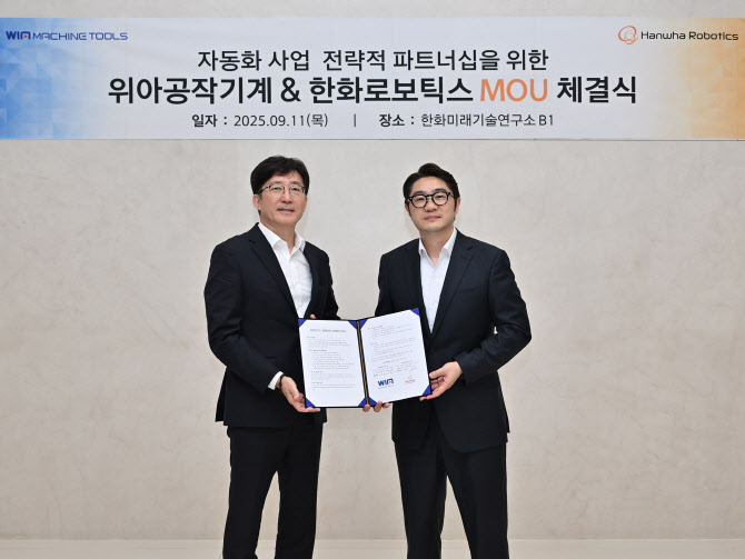 양사는 오는 22일부터 독일 하노버에서 열리는 세계 최대 공작기계 전시회 ‘EMO 2025’에서 첫 번째 협업 성과를 공개할 예정이다. 한화로보틱스의 협동로봇과 위아공작기계의 공작기계를 결합한 자동화 솔루션 2종을 전시한다. 내년에도 국내외 주요 전시에 공동으로 참가한다.
