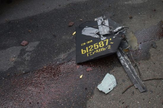 지난 6월(현지시간) 우크라이나 키이우의 한 주거지역에 '게란-2(Geran-2)'라고 적힌 러시아 드론 파편이 떨어져 있다. AP연합뉴스 |