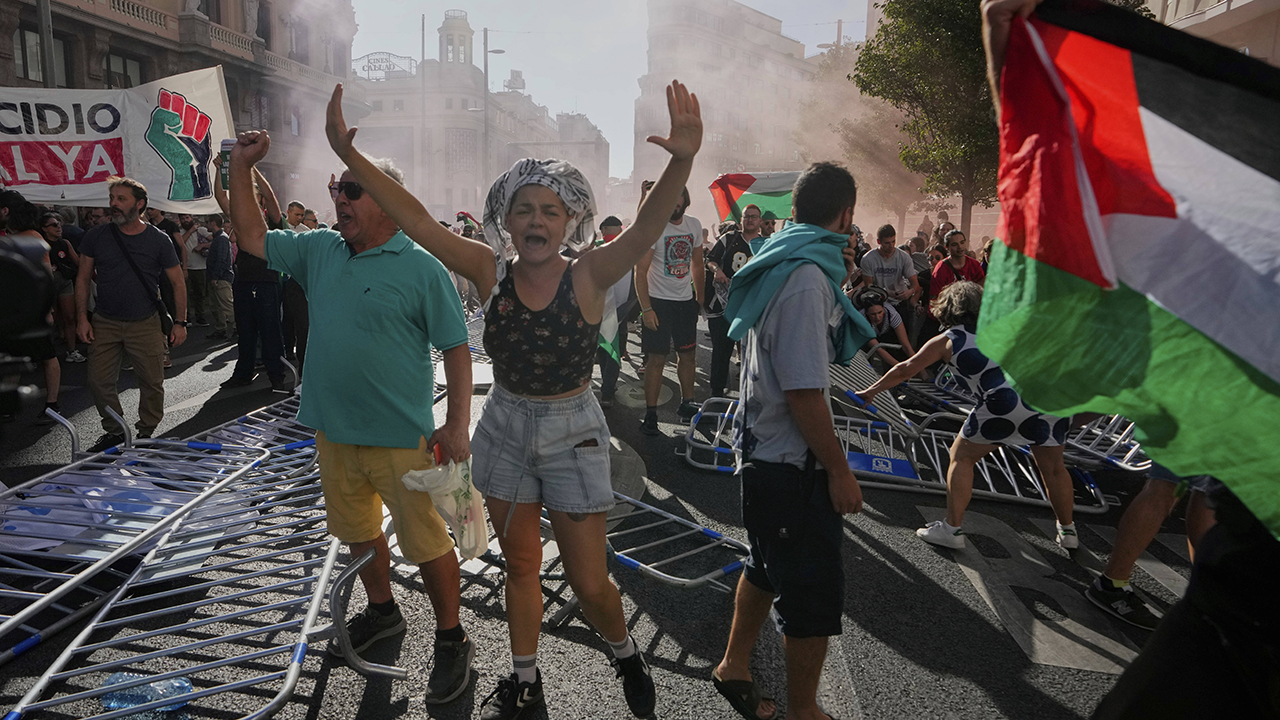 AP통신 등에 따르면 수백 명의 반이스라엘 시위대가 현지시간 14일 마드리드 시내의 마지막 코스를 점거하면서 부엘타 대회가 중단됐습니다.
