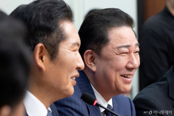 (서울=뉴스1) 이승배 기자 = 정청래 더불어민주당 대표와 김병기 원내대표가 15일 서울 여의도 국회에서 열린 최고위원회의에 참석해 미소짓고 있다. 2025.9.15/뉴스1 Copyright (C) 뉴스1. All rights reserved. 무단 전재 및 재배포, AI학습 이용 금지. /사진=(서울=뉴스1) 이승배 기자 |