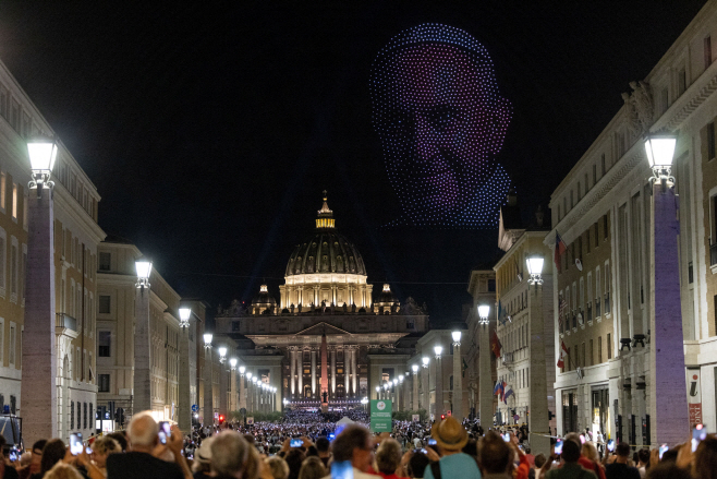 아시아투데이 정아름 기자 = 지난 13일(현지시간) 이탈리아 로마 바티칸 성 베드로 광장에서는 안드레아 보첼리와 퍼렐 윌리엄스가 공동 연출한 '그레이스 포 더 월드' 공연을 보기 위해 수만 명이 모였다. 공연 직후에는 드론쇼가 펼쳐졌다.