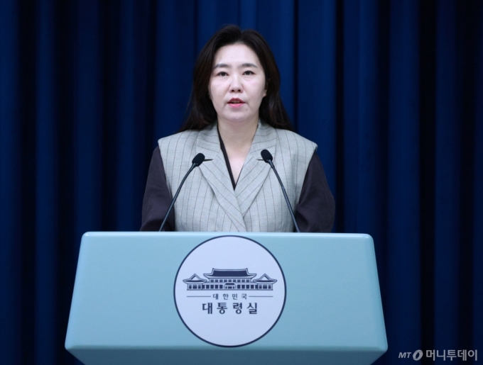 [서울=뉴시스] 고범준 기자 = 강유정 대변인이 15일 서울 용산 대통령실 청사에서 핵심규제 합리화 전략회의 관련 브리핑을 하고 있다. 2025.09.15. bjko@newsis.com /사진=고범준 |