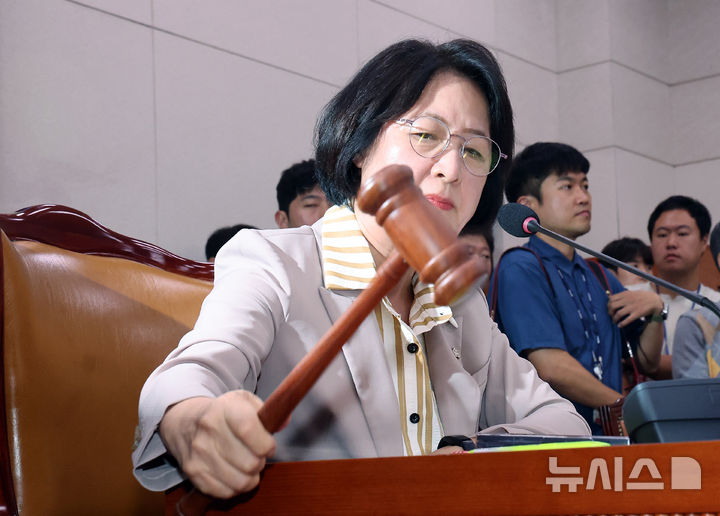 [서울=뉴시스] 김명년 기자 = 4일 오후 서울 여의도 국회에서 열린 법제사법위원회 전체회의에서 추미애 위원장이 의사봉을 두드리고 있다. 2025.09.04. kmn@newsis.com |