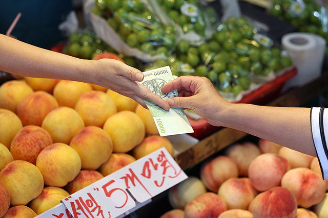 농림축산식품부가 추석을 앞두고 장바구니 물가 부담을 줄이기 위해 성수품을 공급을 확대하고 할인 지원을 추진한다. 서울 시내의 한 전통시장에서 한 시민이 장을 보고 있다. /뉴시스 |