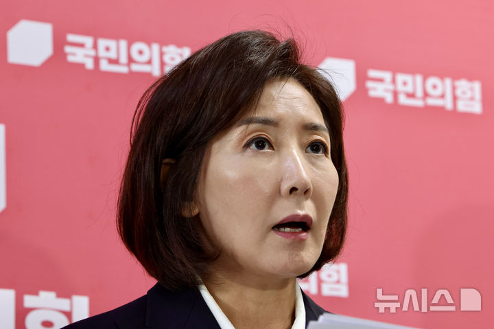 [서울=뉴시스] 김명년 기자 = 나경원 국민의힘 의원이 15일 오후 서울 여의도 국회에서 조희대 대법원장에 대한 여당의 사퇴 요구 등 관련 입장 발표 기자회견을 하고 있다. 2025.09.15. kmn@newsis.com |