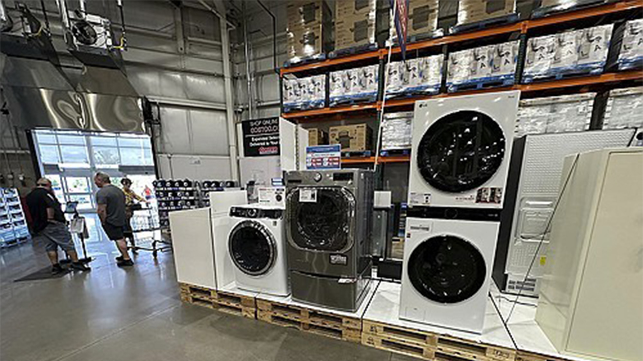 ▲ 지난 7월 8일 미국 콜로라도주 셰리던의 한 코스트코 매장 입구에 세탁기들이 진열돼 있다.