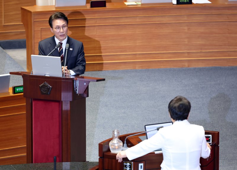 김민석 국무총리가 15일 서울 여의도 국회에서 열린 정치 분야 대정부질문에 출석해 임이자 국민의힘 의원의 질의에 답하고 있다. 뉴시스 |