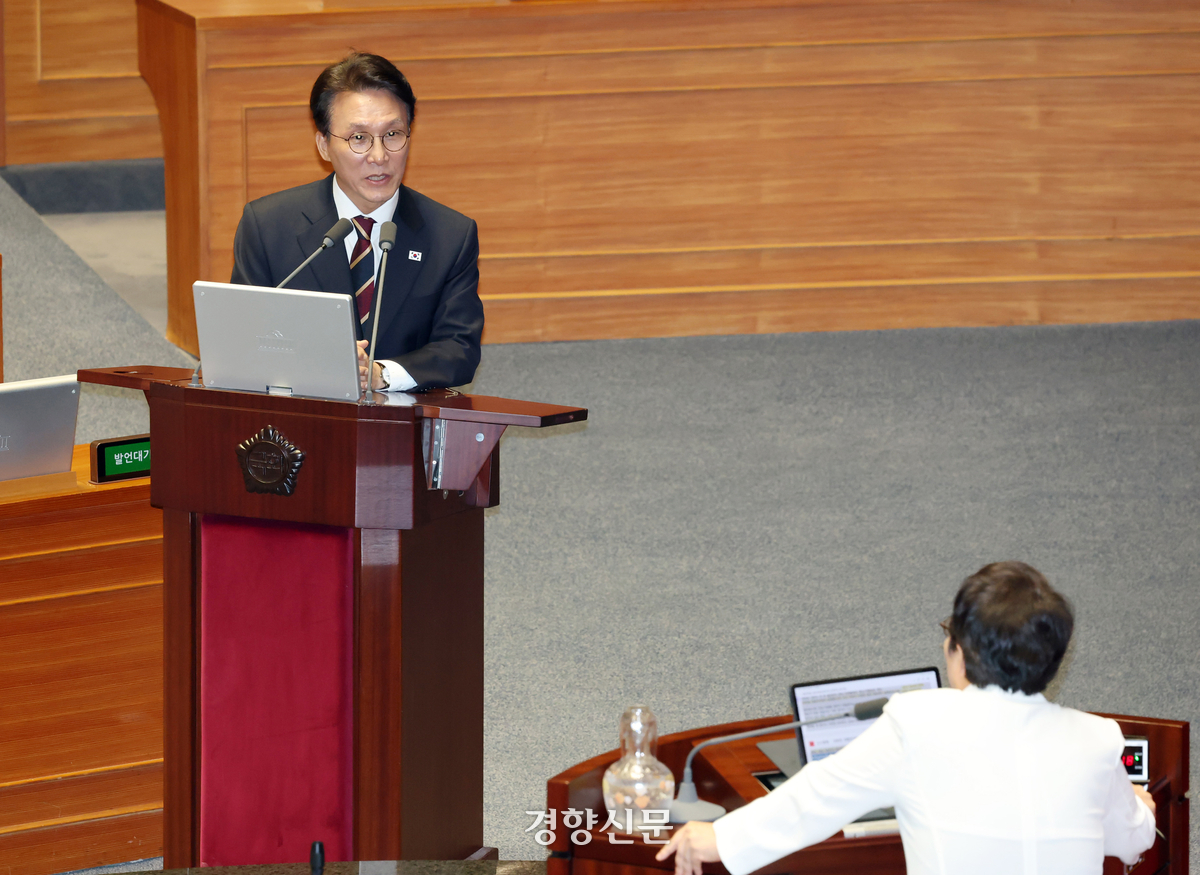 김민석 국무총리가 15일 국회 대정부질문에서 답변하고 있다. 박민규 선임기자 |