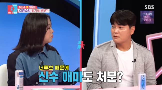 이날 게스트로 함께한 추신수는 아내 하원미가 '이혼숙려캠프'에 출연하고 싶다고 한 것을 언급하며, "유튜브나 방송에 욕심이 있는 건 알겠는데 굳이 나를 밟아가면서까지 할 필요는 없지 않냐"고 말했다.