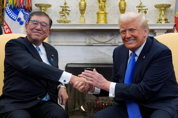 도널드 트럼프 미국 대통령(오른쪽)과 이시바 시게루 일본 총리. /AP 뉴시스 |