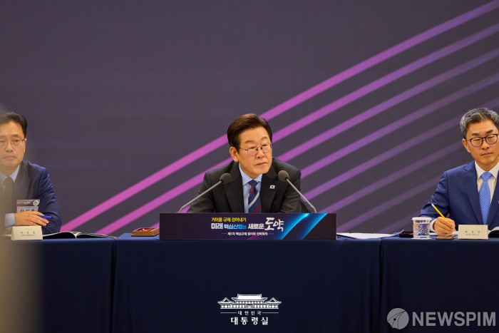 [서울=뉴스핌] 이재명 대통령이 지난 15일 서울 성북구 한국과학기술연구원에서 열린 제1차 핵심규제 합리화 전략회의에 자리하고 있다. [사진=대통령실] 2025.09.16 photo@newspim.com