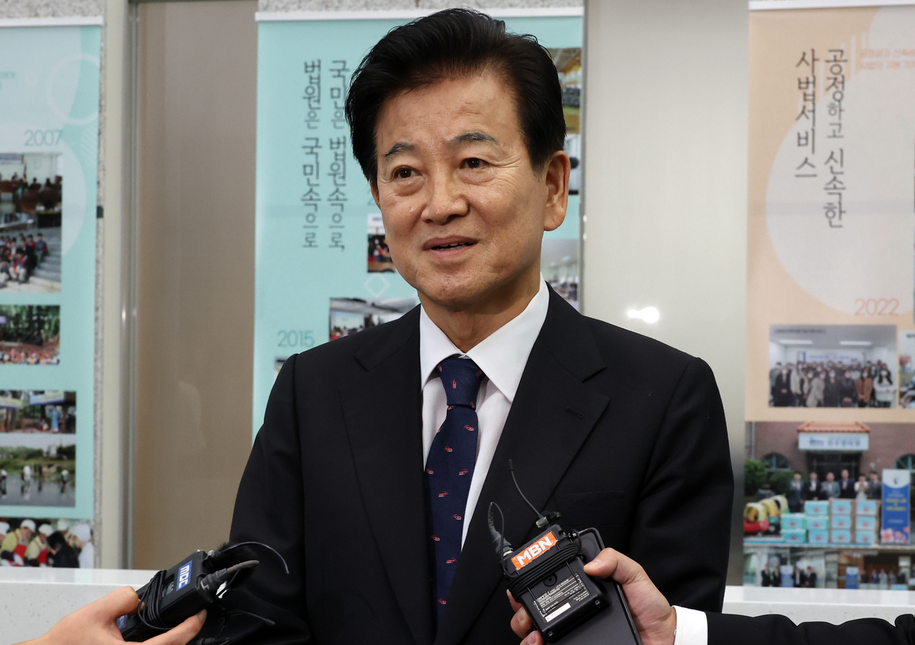 공직선거법 위반 혐의로 기소돼 1심에서 벌금 70만원을 선고받은 정동영 통일부 장관이 10일 전주지법에서 항소심 선고 공판을 마치고 나와 취재진과 인터뷰하고 있다. [연합] |