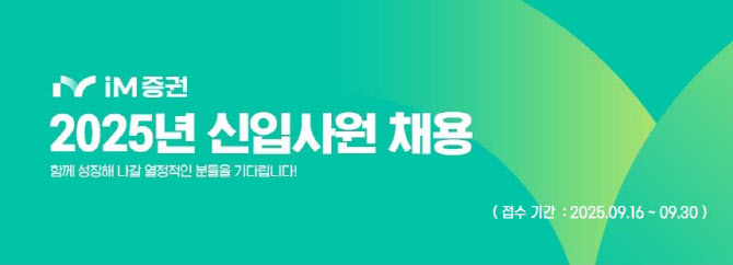 지원서는 iM증권 채용 홈페이지를 통해 이달 30일까지 접수한다. 서류 전형을 시작으로 인공지능(AI) 역량검사 및 1·2차 면접, 약 5주간의 인턴 활동 및 최종면접이 진행된다.