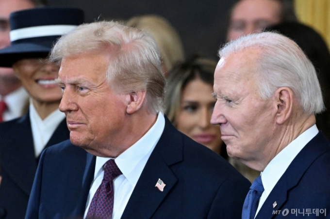 (워싱턴DC 로이터=뉴스1) 류정민 특파원 = 도널드 트럼프 미국 대통령과 조 바이든 전 대통령. 2025.01.20. ⓒ 로이터=뉴스1 Copyright (C) 뉴스1. All rights reserved. 무단 전재 및 재배포, AI학습 이용 금지. /사진=(워싱턴DC 로이터=뉴스1) 류정민 특파원 |