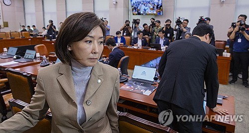(서울=연합뉴스) 황광모 기자 = 국민의힘 나경원 의원이 16일 국회에서 열린 법제사법위원회 전체회의에서 본인의 간사 선임에 대한 안건이 추미애 위원장에 의해 무기명 표결로 결정되자 국민의힘 의원들과 이에 항의하며 퇴장하고 있다. 2025.9.16 hkmpooh@yna.co.kr |