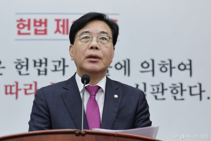 (서울=뉴스1) 신웅수 기자 = 송언석 국민의힘 원내대표가 16일 오전 서울 여의도 국회에서 열린 긴급 의원총회에서 발언하고 있다. 2025.9.16/뉴스1 Copyright (C) 뉴스1. All rights reserved. 무단 전재 및 재배포, AI학습 이용 금지. /사진=(서울=뉴스1) 신웅수 기자 |