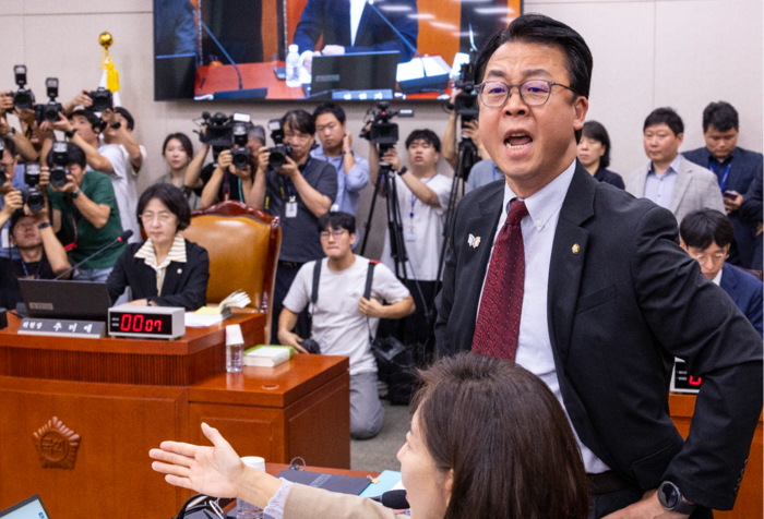 16일 국회에서 열린 제429회국회(정기회) 법제사법위원회 제4차 전체회의에서 국민의힘 의원들이 최혁진 무소속 의원과 설전을 벌이고 있다. 2025.9.16 [한주형기자] |