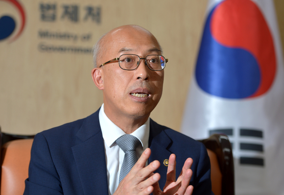 A : “법제처도 정부 부처 중 하나이고, 법제처장은 정부의 법무대리인 성격도 있어 최대한 정부 정책을 뒷받침해야 한다. 다만 명백히 법률의 위임 범위를 벗어나는 시행령 개정이 있다면 이견을 제시하고 제 목소리를 내는 게 오히려 정부에 도움이 된다. 법제처 내에서도 담당자들이 내가 원하는 말만 하면 불안할 것 같다. 대통령과 법제처장의 관계도 같다.”