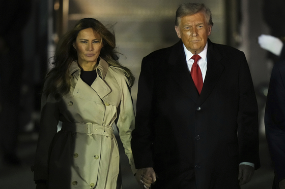 영국을 국빈방문한 도널드 트럼프 대통령과 멜라니아 트럼프 여사가 16일(현지시간) 런던 인근 스탠스테드 공항에 도착하고 있다. AP=연합뉴스 |