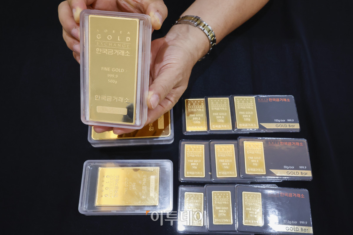 9일 서울 종로구 한국금거래소에서 관계자가 골드바를 정리하고 있다. 조현호 기자 hyunho@ |