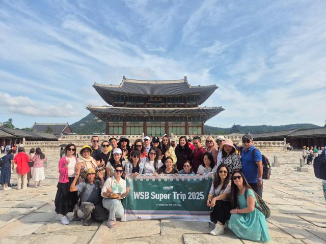 WSB 수퍼 트립 참가자들이 경복궁을 둘러본 후 기념촬영을 하고 있다. [사진=한국관광공사] |