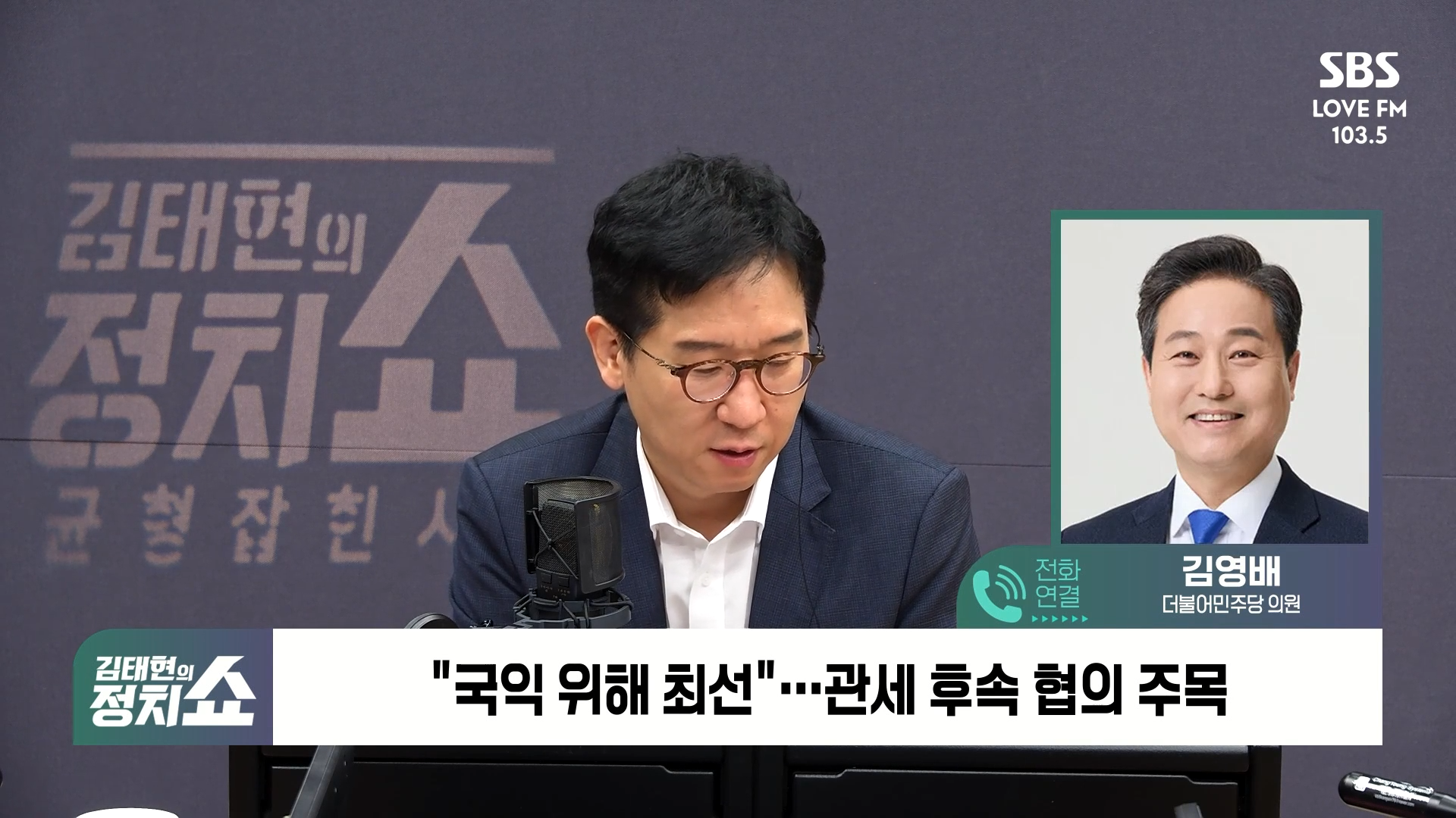 ▶김영배 : 그러니까 실제로 APEC이 10월 31일에 우리 경주에서 있지 않습니까. 미중 간의 협상이 관세를 포함해서 진행되고 있다고 하는데요. 트럼프 대통령하고 시진핑 주석이 6년 전에 만나고 사실 못 만났거든요. 그래서 APEC 경주에서 미중 간에 정상회담도 예상되고 있기 때문에 저는 조금 더 긴 호흡으로 우리가 다소 좀 고통스럽더라도 국익을 위해서는 제대로 된 협상을 해야 되지 않느냐 이게 우리 민주당과 정부의 분위기다 이렇게 말씀을 드립니다.