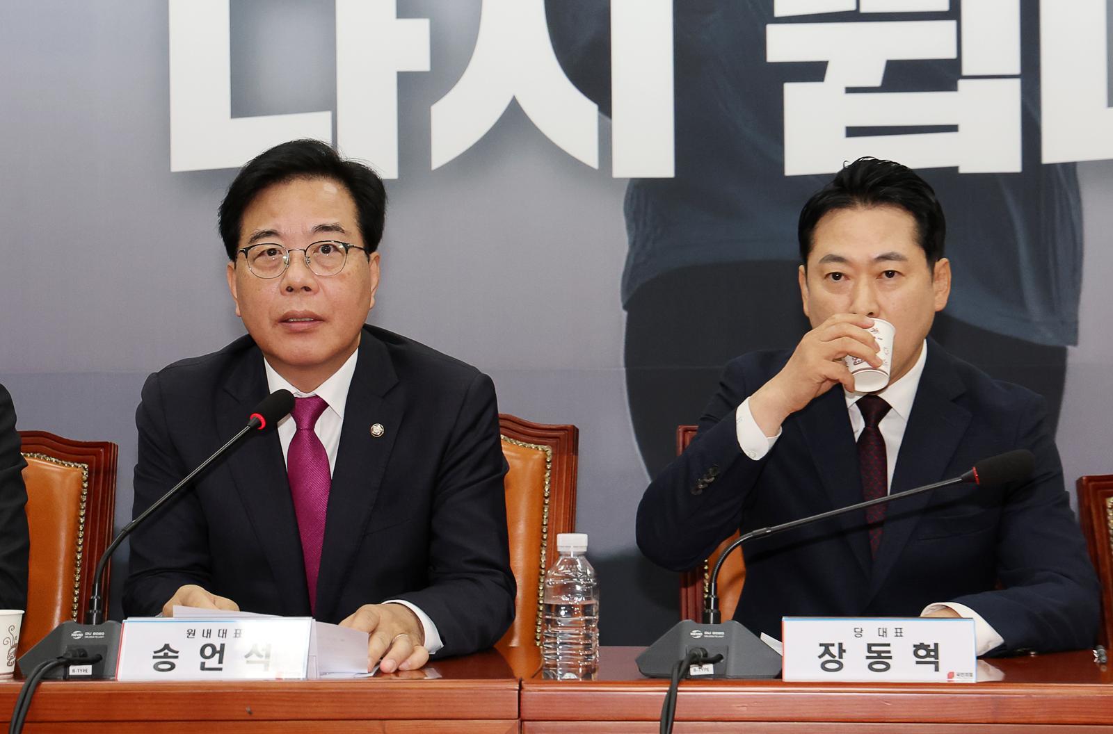 송 대표는 권성동 의원에 대한 구속 영장 발부에 대해 “사법부가 먼저 알아서 드러누운 그런 상황이 전개되고 있다”며 “아직 대응할 계획은 없지만, 의원들과 상의해 행동 지침을 만들 것”이라고 했다.