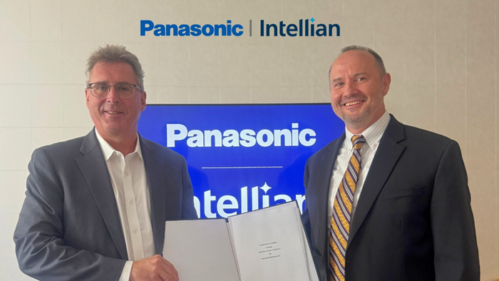 존 웨이드 파나소닉 에비오닉스 부사장과 에드워드 조애니디스 인텔리안테크놀로지스 부사장이 기념 촬영을 하고 있다. |