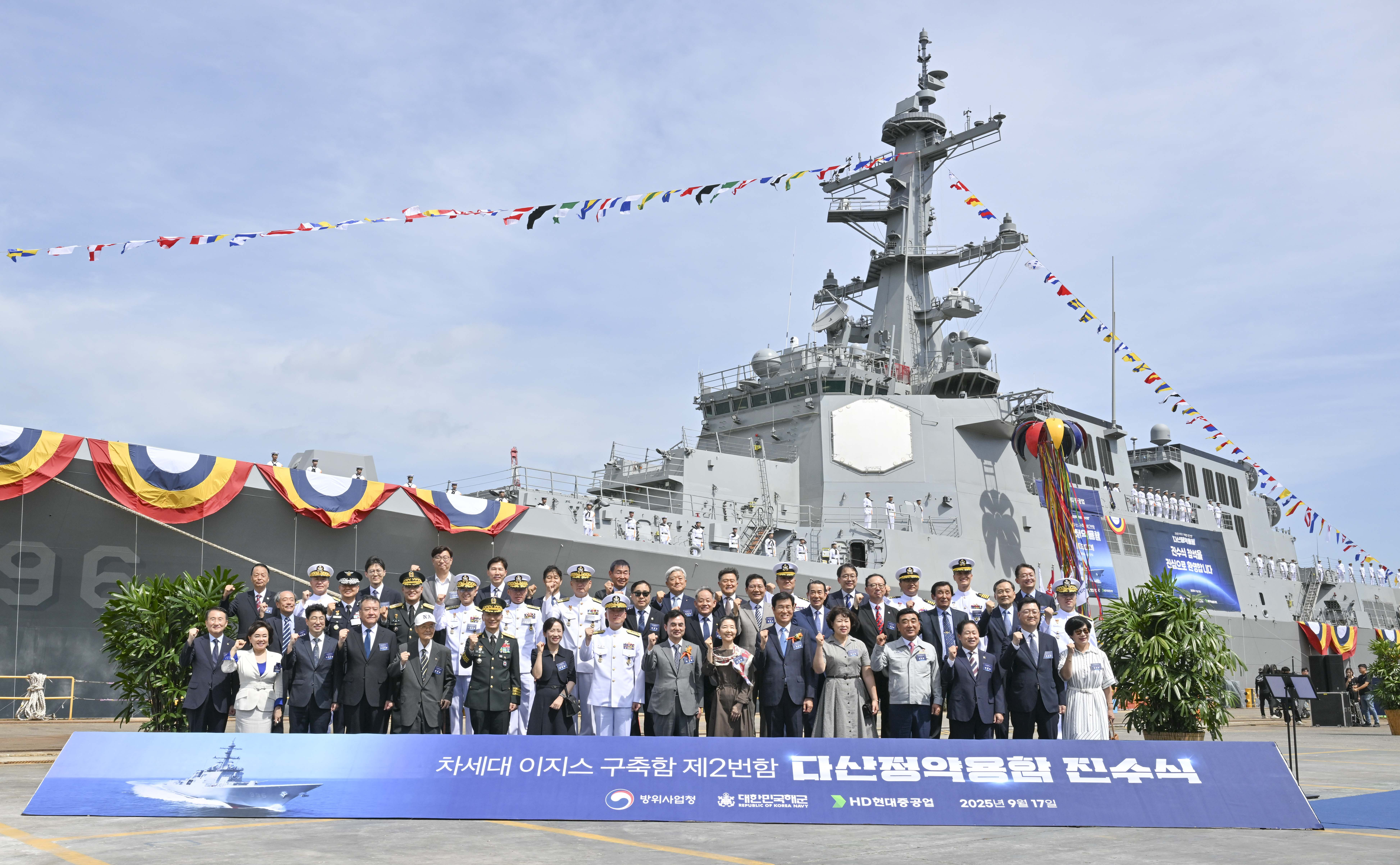 해군과 방위사업청은 오늘(17일) 울산 HD현대중공업에서 광개토-Ⅲ Batch-Ⅱ(정조대왕급) 2번함인 '다산정약용함' 진수식을 거행했다고 밝혔습니다.