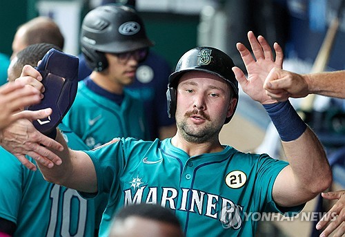 (서울=연합뉴스) 하남직 기자 = '홈런 치는 포수' 칼 롤리(시애틀 매리너스)가 홈런포 두 방을 쏘며 미국프로야구 메이저리그(MLB) 단일 시즌 스위치 히터(양손 타자) 최다 홈런 기록을 세우고, 시애틀 구단 최다 홈런 타이기록도 작성했다.